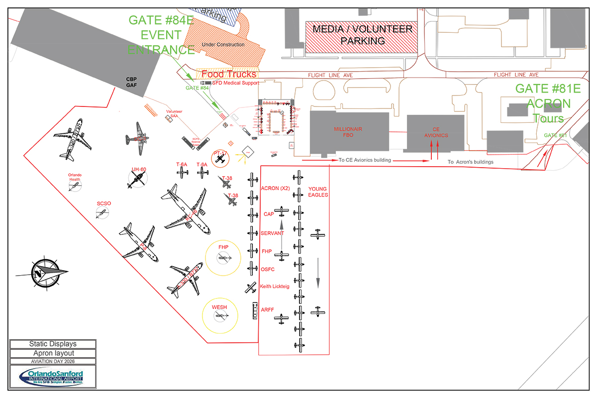 Aviation Day Orlando Sanford is held at the Million Air Hangar at Orlando Sanford International Airport. Whether you're arriving by car or plane, explore maps and parking details below to help plan your visit.
